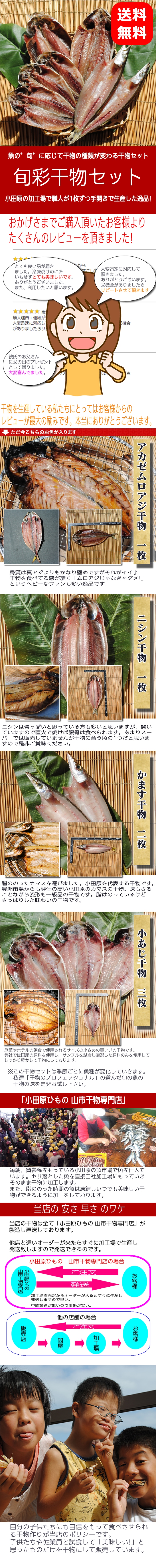トップ > 送料無料シリーズ > 送料無料♪【国産】旬彩干物セット〜旬の魚だけで作った干物のセットです。アカゼムロアジ ニシン 小アジ かます